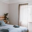 A small first-floor apartment with kitchen, bathroom and bedroom.